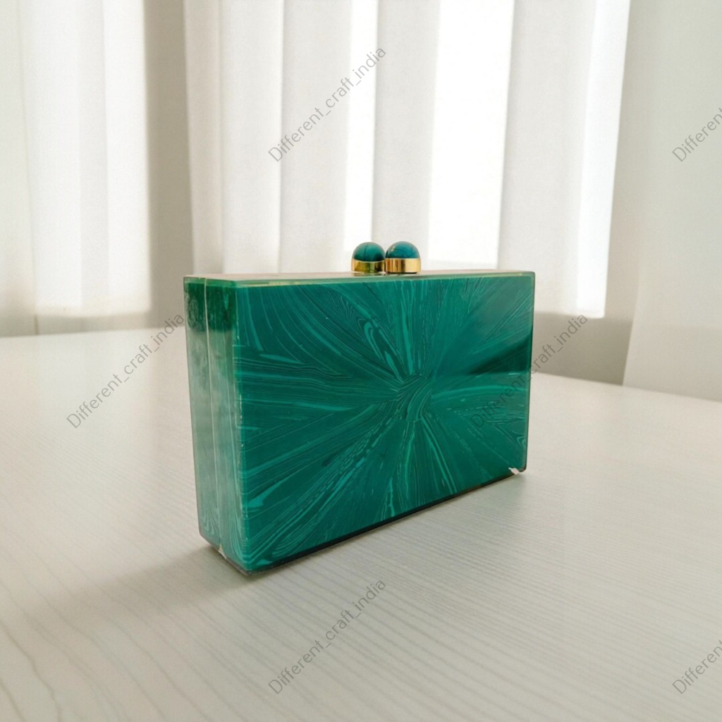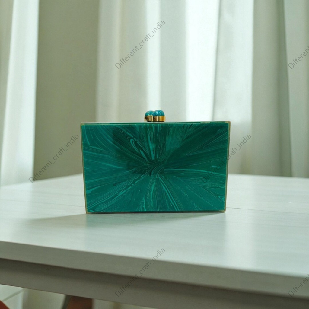 Emerald Green Gemstone Clutch Bag Fully Covered in 100% Natural Malachite Stone