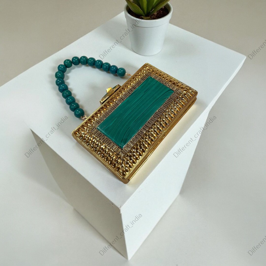Malachite’s deep green hue makes this clutch an ideal choice for weddings and bridal celebrations. It pairs beautifully with gold jewelry and richly embellished wedding attire, making it suitable for bridesmaids, wedding guests, and festive family occasions.